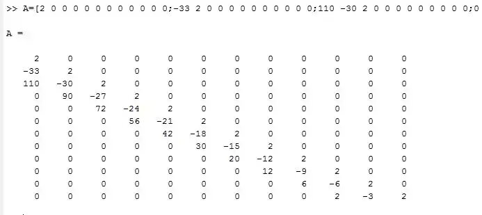 can be easily solved by forward substitution,the following values were calculated in matlab: