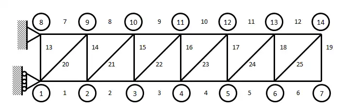 The CALFEM toolbox is used to solve the system of equations and integrate the equations of motion. First the CALFEM command “eigen” is used to solve for the eigenvalues, , and eigenvectors, , of the generalized eigenvalue problem: