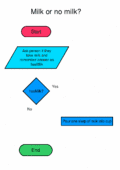 Once you're happy with your algorithm, let us see how Repitition works with a flowchart! Try re-arranging the displayed flowchart symbols to describe an algorithm that adds the correct amount of sugar to your cup: