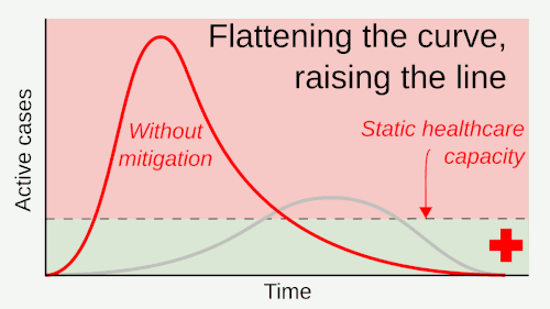 Many countries attempted to slow or stop the spread of COVID-19 by recommending, mandating or prohibiting behaviour changes, while others relied primarily on providing information. Measures ranged from public advisories to stringent lockdowns. Outbreak control strategies are divided into elimination and mitigation. Experts differentiate between elimination strategies (commonly known as "zero-COVID") that aim to completely stop the spread of the virus within the community,[156] and mitigation strategies (commonly known as "flattening the curve") that attempt to lessen the effects of the virus on society, but which still tolerate some level of transmission within the community.[157] These initial strategies can be pursued sequentially or simultaneously during the acquired immunity phase through natural and vaccine-induced immunity.[158]