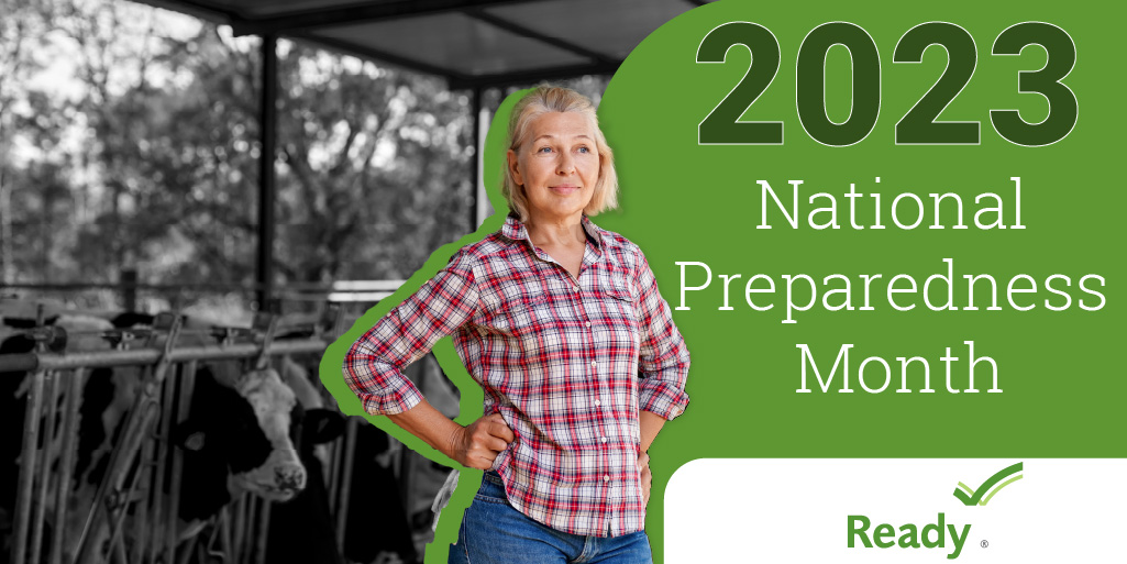 Social media graphics for the 2023 National Preparedness Month (NPM) in English and Spanish.